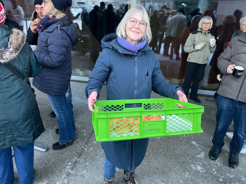 Mit einem heissen Orangenpunsch oder einem Jagertee wurde aufs neue Jahr angestossen, dazu konnten Brötchen vom Königskuchen verspeist werden – dieses Jahr allerdings ohne Königswahl. An den Stehtischchen wurde geplaudert und die letzten Neuigkeiten wurden ausgetauscht. Es herrschte eine freundliche und angenehme Atmosphäre. Wie stets!
