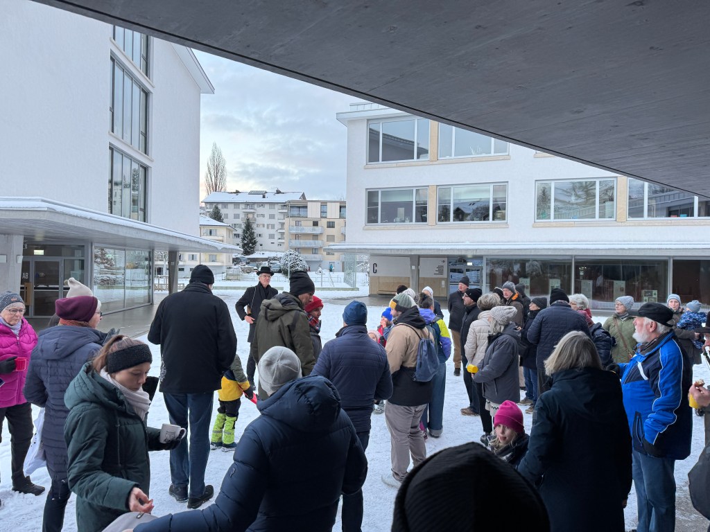 Wie jedes Jahr trafen sich die Quartierbewohnerinnen und -bewohner am ersten möglichen Sonntag im Monat Januar zum Neujahrsapéro. Dieses Jahr fanden rund 50 Erwachsene und 7 Kinder den Weg zum Schulhaus Staffeln bei kalten Temperaturen und trockenem Wetter.