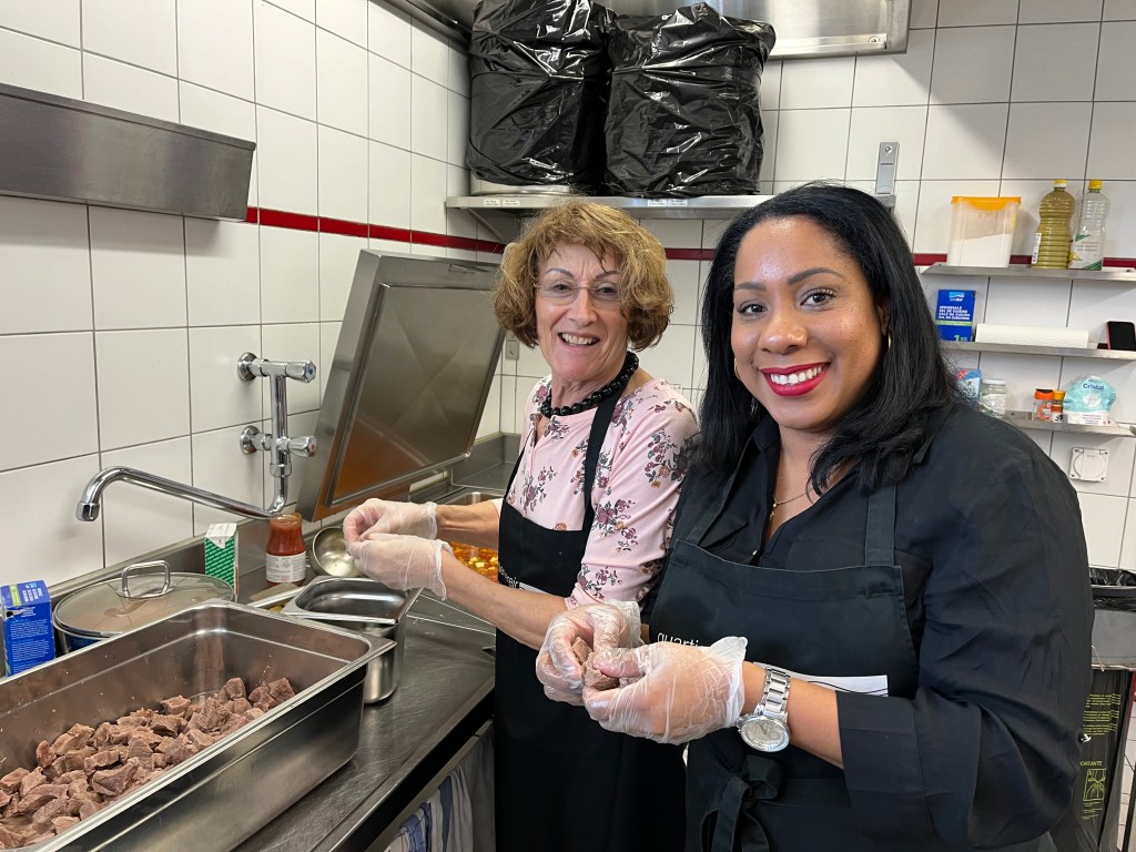 Nachdem die Vorspeise weggeputzt war, wurde zum Fassen der Hauptspeise gerufen: Reis mit schwarzen Bohnen, nochmals ein Schnitz Avocado, ein Eintopfgericht mit Maniok, Yuka und anderem und ein Eintopfgericht mit Peperoni, Tomaten, Kartoffeln und zerzupftem Rindfleisch.