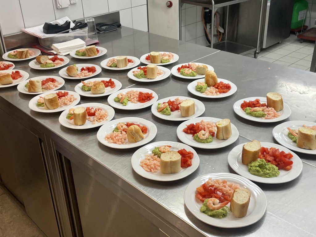 Gespräche ergaben sich. Die Augen wanderten zu den Vorspeisentellern: Guacamole mit Tomatenstückchen und Crevetten. Dazu ein Stück Brot. Mmh! Die Gesichter unserer Gäste, zufrieden.